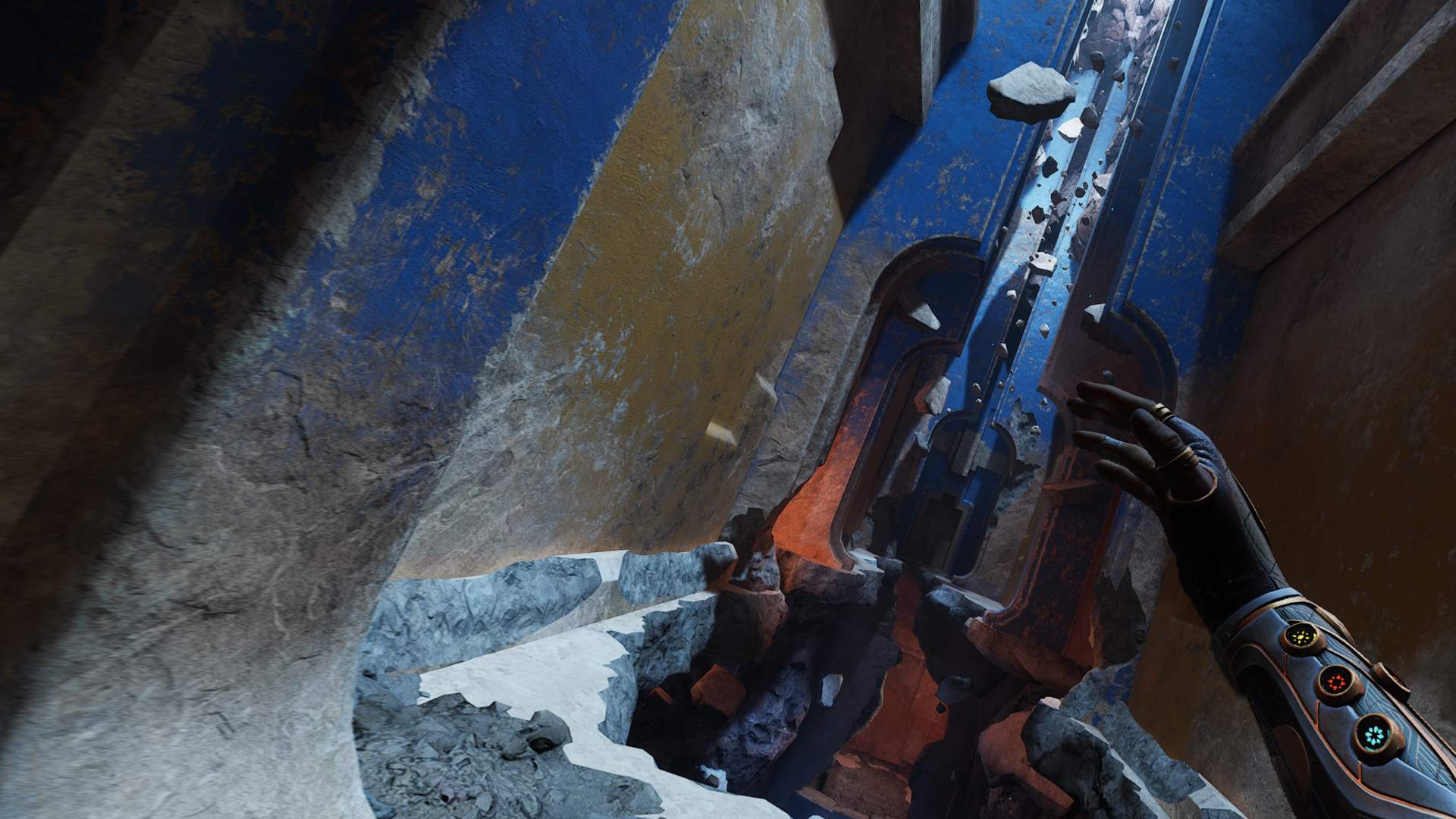 Tím ale rozhodně nechci říct, že je hraní nuda. Právě naopak. Reach patří k těm nejsvižnějším a nejchytlavějším VR hrám založeným na lezení a skákání. Mechaniky pohybu zde totiž jsou intuitivní, ale nikoli banální. Jsou hry, v nichž jedinou výzvu při zdolávání lezeckých stěn představuje nepřesné ovládání. Reach po vás chce najít si tu správnou trasu, pohybovat se svižně a efektivně si naplánovat skoky. Zároveň zvládá být dost návodný na to, abyste nikdy vyloženě netápali, kam máte jít. K tomu vám napomáhá jednoduchá mapka, dron ukazující cestu, ale také zkrátka kvalitní design, který vás nenechává na pochybách, kam se dá doskočit.