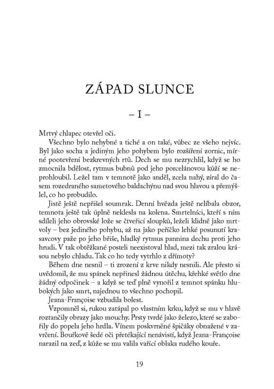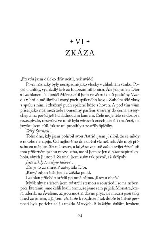 „Viděla jsem propast jen dech od své tváře, hříšníku. Slyšela jsem prosby nesčetných smrtelníků, jak žadonili o své věčnosti. Poslouchala jsem křik tisíců osiřelých nemluvňat, ovdovělých ženichů, pozůstalých matek, říší zcela obrácených v trosky, a povím ti, že zvuk, který vydal můj bratr, se ničemu z toho, co jsem kdy slyšela, nepodobal. Nebyl to hněv. Nebyl to strach. Byl to zvuk… zlomeného srdce. Dokonale, příšerně a zcela. Byl to křik muže, který se vytáhl ze samotného okraje zoufalství a nyní se po hlavě řítil do temnoty. Byl to křik muže, který vsadil všechno – své srdce, duši, příčetnost – na to, že nikdy nezklame někoho, kdo ho opět miloval.“