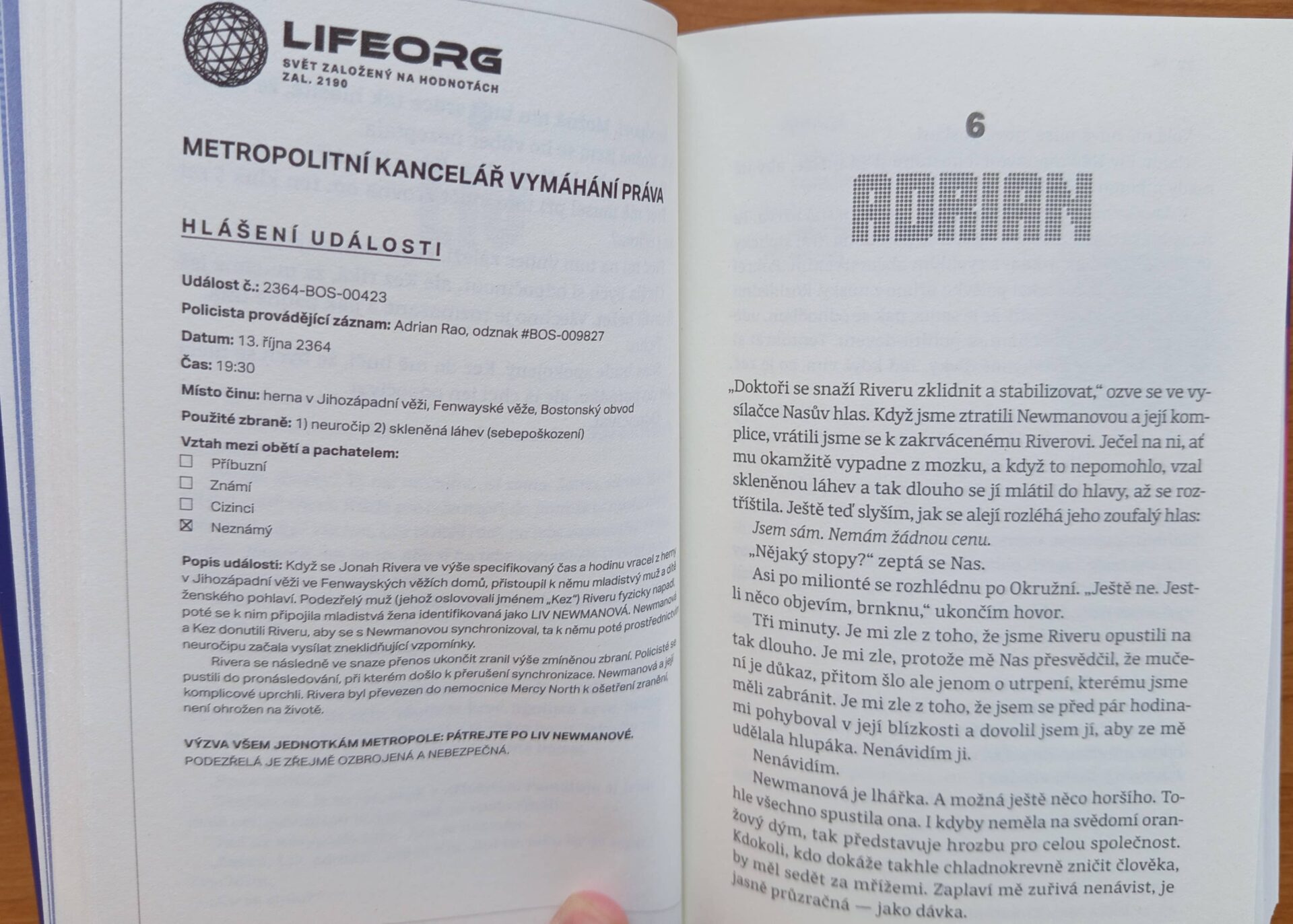 Na začátku románu, který u nás vychází u nakladatelství Host, jsem se opravdu těšila na vše, co mě při čtení čeká. Hned na prvních stranách má kniha jakési kouzlo, něco, z čeho na vás opravdu dýchne ta esence technologických vymožeností. Nasajete ji, podíváte se do vkusně vyvedené (leč ne úplně detailní) mapky, přečtete si úvodní informace poskytnuté korporátním gigantem LifeOrg… a cítíte, že to bude opravdu stát za to.