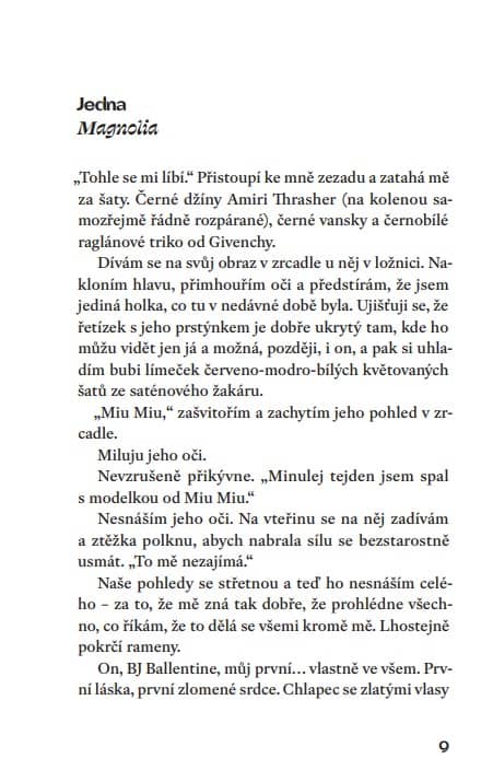Hlavní postavy jsou napsané tak, aby v čtenáři vyvolávaly silné emoce – sympatie, frustraci, pochopení i odpor. Magnolia i BJ jsou chybující, impulzivní a často velmi sebestřední. To by samo o sobě nebylo problematické, pokud by s tím text dál pracoval. Právě tady se ale ukazuje jeden z největších problémů knihy, postavy se prakticky nevyvíjejí.