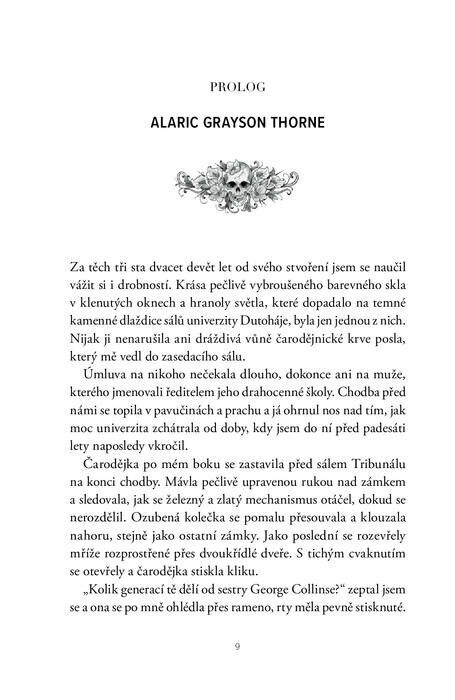 A pak přichází Alaric Grayson Thorne. Démon v lidském těle, chladný, nebezpečný a temný jako noc sama. Přijme post ředitele univerzity Dutoháje – místa, kde se čarodějové mohou učit magii bez pozornosti ze strany smrtelníků. A jeho prvním úkolem je najít studentku, která se celý život snaží přesně této pozornosti vyhnout. Hádáte správně, je to Willow.