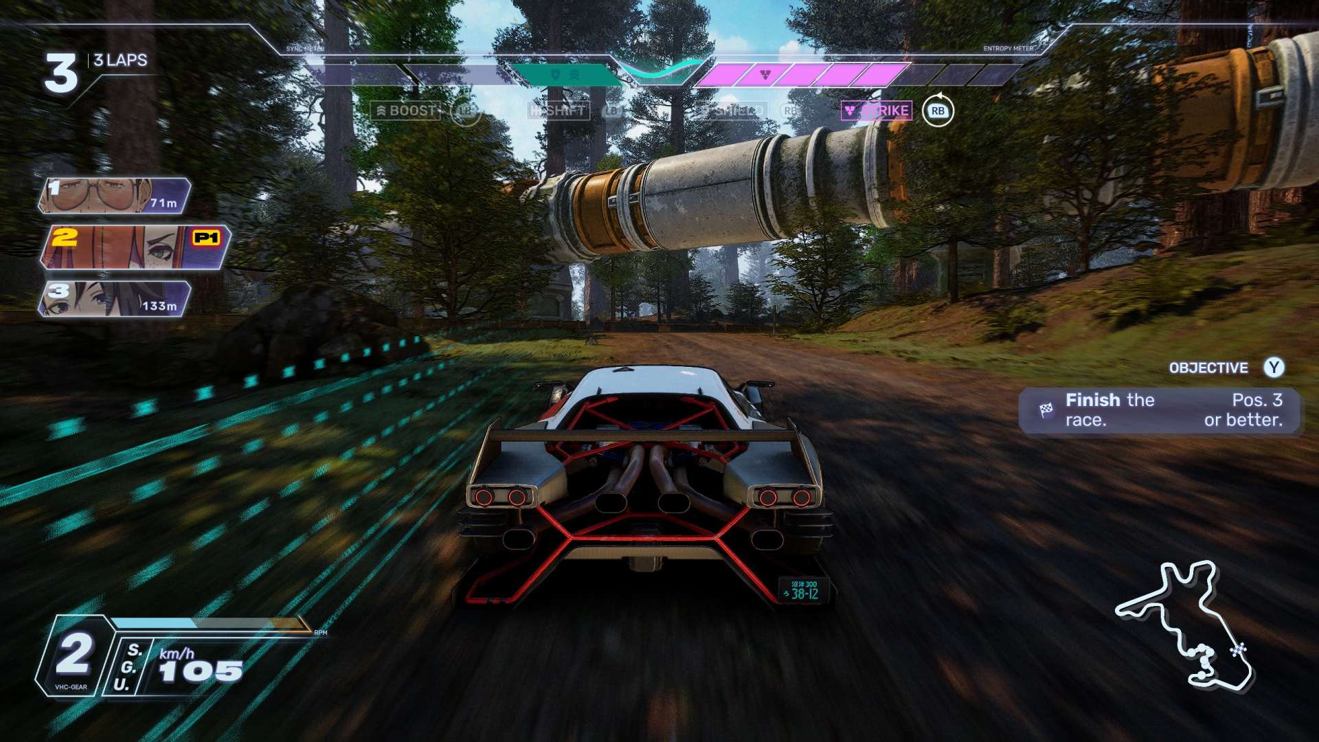 V některých závodech je třeba být úplně první, v jiných jde o to se alespoň umístit v první trojici a jindy musíte plnit specifické úkoly – třeba zlikvidovat konkrétní soupeře, nebo využít uvedenou schopnost. Tyto úkoly obvykle úspěšné zakončení závodu komplikují, ale někdy se dají exploitnout. Když jsem třeba zaboha nedokázal dohnat soka, jehož jsem měl zničit, prostě jsem ho nechal předjet mě o celé kolo, než jsem to do něj vítězoslavně napálil.
