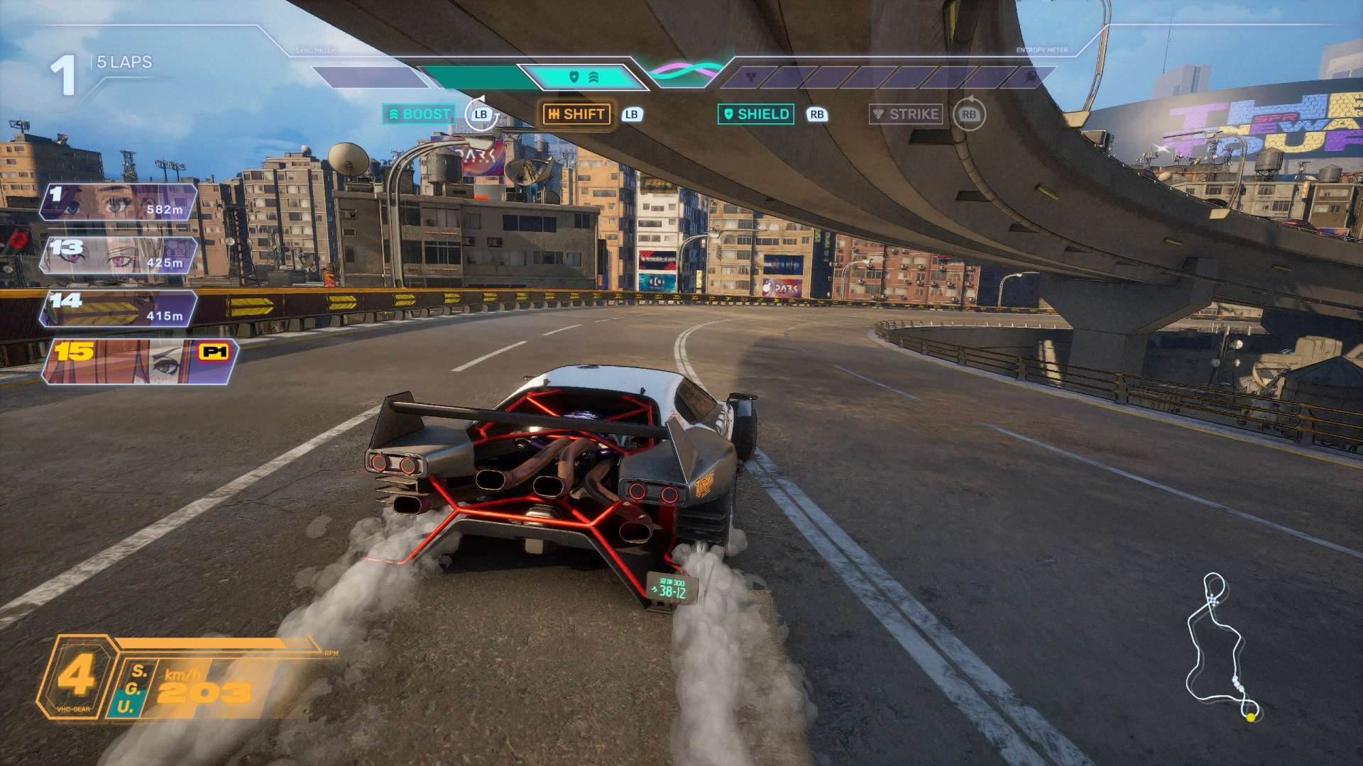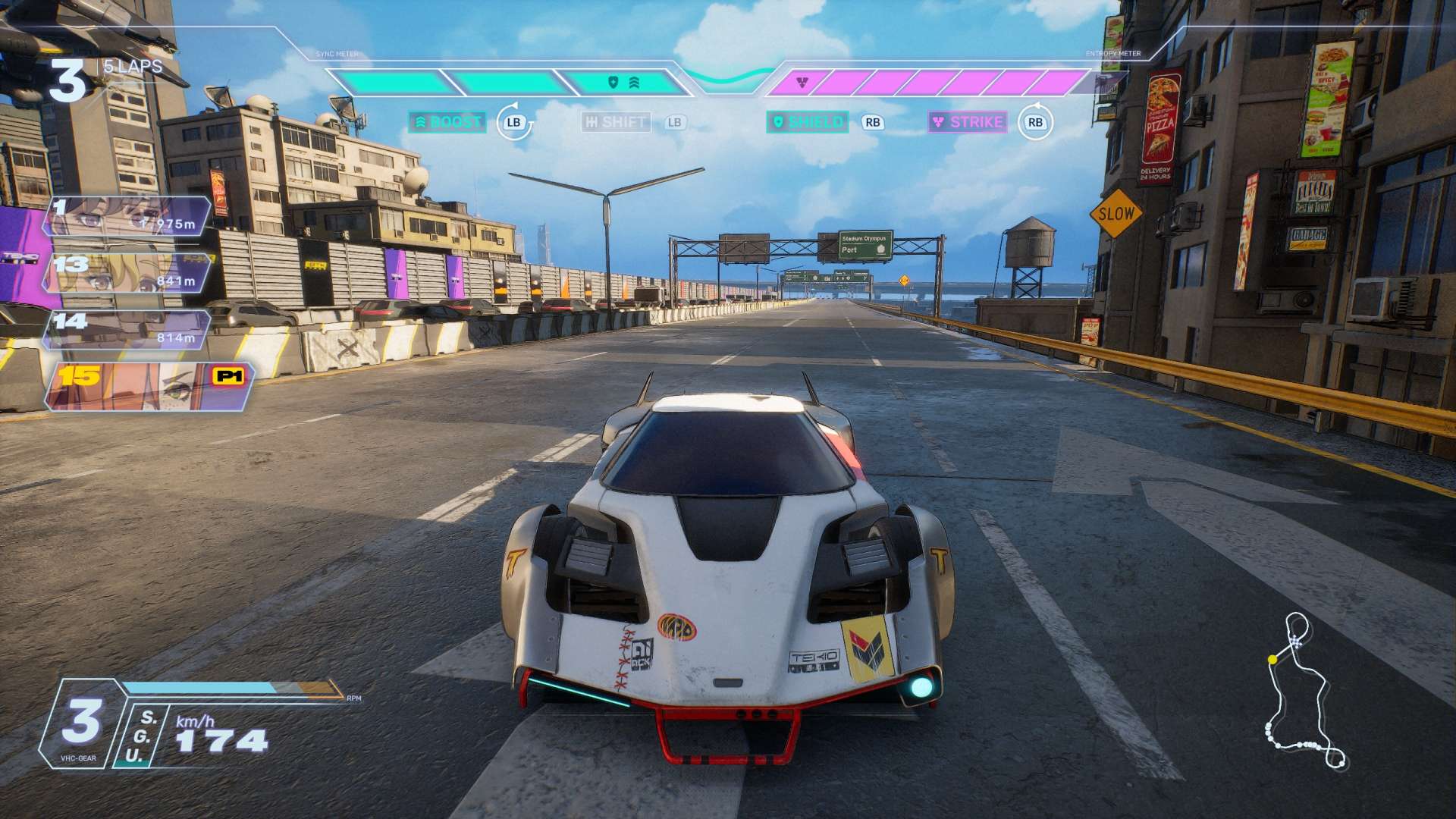 Tratí je k dispozici celkem 32, a je potřeba je postupně odemykat plněním příběhové kampaně, aby se zpřístupnily i v dalších módech. Je to slušný počet, nicméně se nejde vyhnout určitému pocitu opakování, protože tyto tratě jsou rozděleny jen do čtyř vizuálně jasně odlišných lokací – futuristického neonového města, pustiny s továrnami a průmyslovými instalacemi, hustého lesa a vesmírné stanice na orbitu Země. Právě čtvrté prostředí, před launchem tajené jako překvapení, nabízí ty vizuálně nejvíce strhující tratě, takže je možná škoda, že se k němu propracujete až po čase. Z celé nabídky je nejživější a nejdetailnější, duchovně nejvíce blízké původnímu Screamerovi. U některých z předchozích tratí, navzdory tomu jak pěkně vypadají, jsem se nemohl vyhnout pocitu, že tvoří jen jakési pozadí a nikoli stěžejní prvek hry.