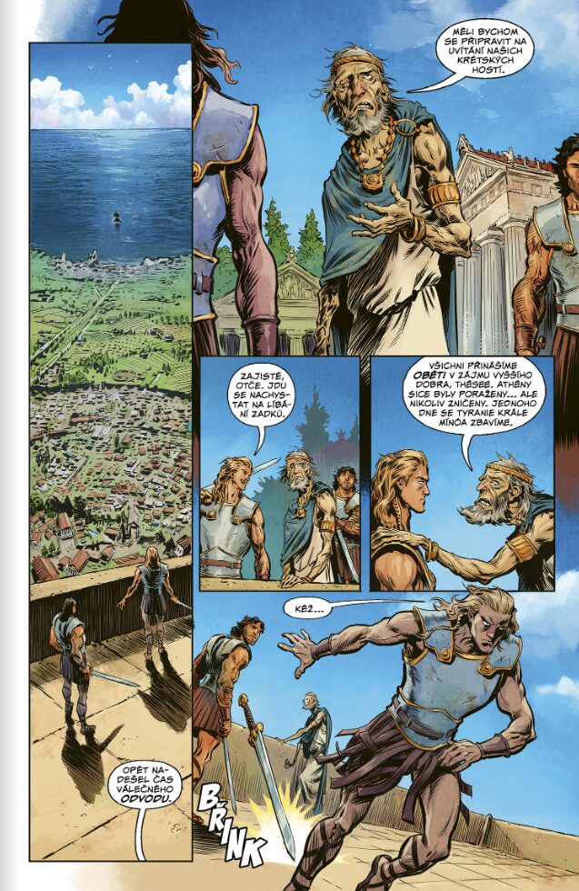 Řecké mýty a báje představují nekonečnou studnici inspirace a v mém případě také celoživotní literární fascinaci. Ať už jde o legendárního Herkula, Persea či Iásona, tito hrdinové definovali samotný pojem epického dobrodružství. Théseus si nicméně již od dětství drží v mém osobním žebříčku výsostné postavení, což má své kořeny na počátku tisíciletí v kultovní strategii Age of Mythology, kde patřil k prvním dostupným rekům. Sáhnout po komiksu Smrt Mínótaurova od nakladatelství Comics Centrum tak představovalo naprosto jasnou volbu. Výsledek tohoto rozhodnutí se ukázal jako mimořádně úspěšný, byť se jedná o velmi netradiční a drsné pojetí známé látky.