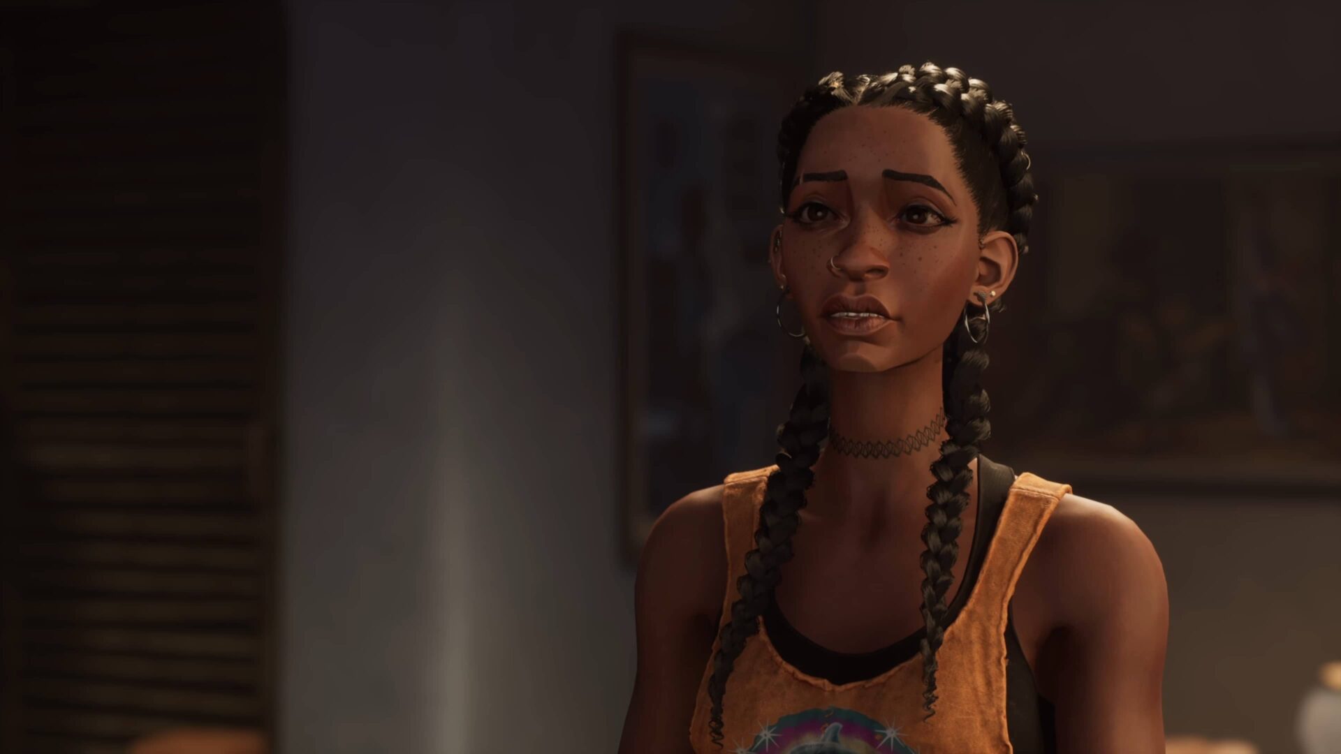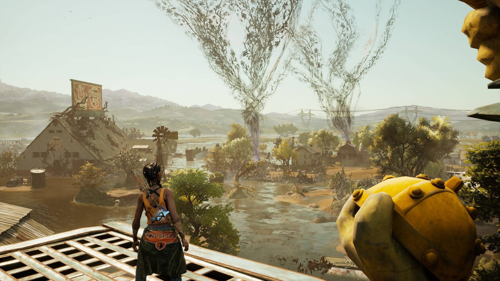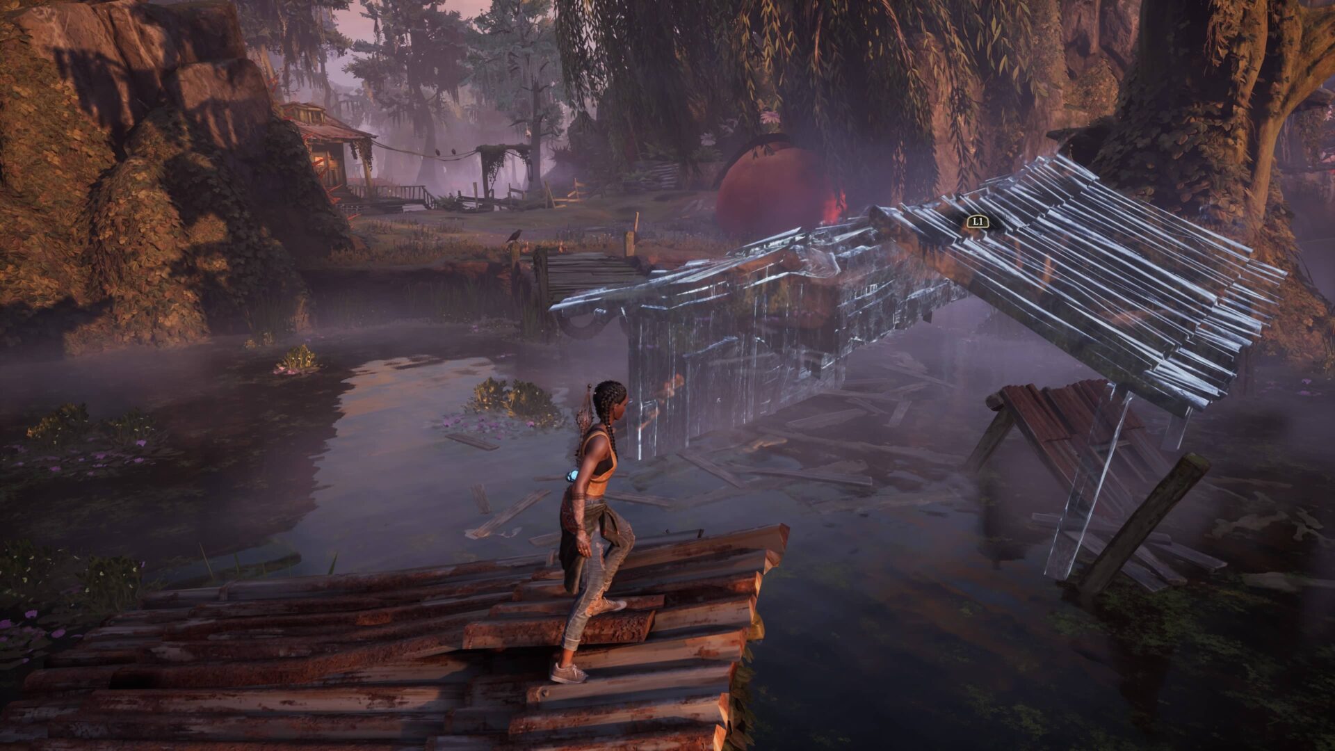 South of Midnight se odehrává na jižanském venkově v okolí fiktivního městečka Prospero a musím přiznat, že zdejší prostředí mi učarovalo na první pohled. Úvodní lokaci tvoří kdysi dávno osídlené, dnes však opuštěné domky, které se propadají do bažin. Pokud pamatujete hry jako Ghosthunter či Infamous 2 nebo jste viděli film Flynn Carsen 3: Jidášův kalich, pak víte, o čem je řeč. Záhy navštívíte zemědělskou oblast, která je však v důsledku hurikánu z velké části pod vodou. Voda je navíc silně znečištěná, a musíte se jí proto za každou cenu vyhnout. Zavítáte do hor, na uzavřenou pilu a osadu vybudovanou pro její zaměstnance. Vše je graficky moc pěkně zpracováno, obzvlášť hra světel a stínů nemá chybu. Menším zklamáním pro mě byly jen poslední dvě lokace, z nichž jedna byla příliš temná a fádní a druhá na můj vkus až příliš fantaskní.