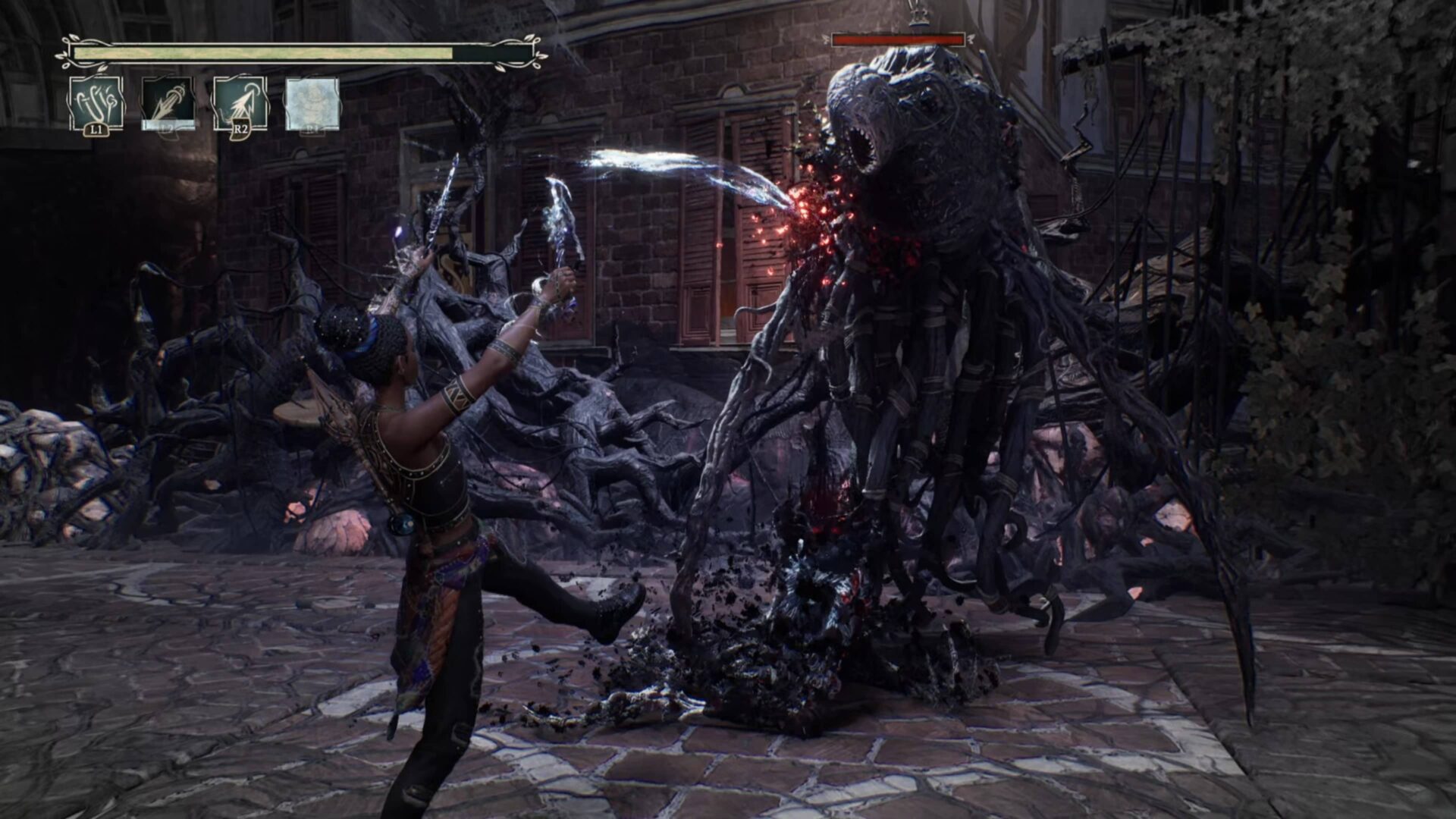 Druhou částí hratelnosti jsou souboje s nepřáteli. Ty mi silně připomínaly hru Kena: Bridge of Spirits. Souboje se odehrávají na prostranstvích ohraničených trnitými šlahouny, jež vás nepustí pryč, dokud nepřátele nepobijete a nerozpletete zdejší uzel. Na rozdíl od Keny jsou však tyto arény zcela ploché a prázdné, takže nemůžete nijak taktizovat s využitím okolního prostředí a při každém souboji máte pocit, jako byste bojovali pořád na stejném místě.