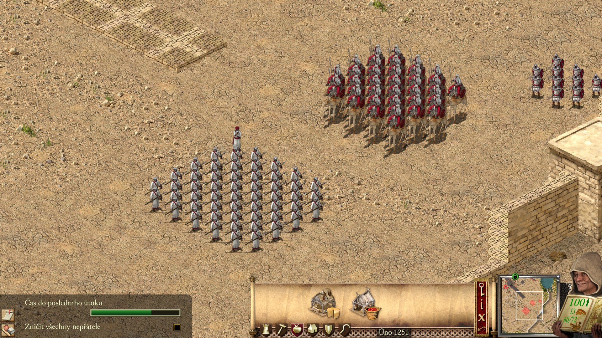 Některé prvky ovládání navíc dnes působí trochu archaicky. Chybí zde pokročilé formace jednotek, komplexní příkazové řetězce nebo detailní správa skupin, na které jsme zvyklí z modernějších strategií. Jasně, neskutečně cením, že když chci postavit dvacet katapultů, stačí jeden klik a rozmisťovat, dokud mám zlaťáky, ale je to strašně málo. Především, když se mi dvojice sejde u stavbařského stanu, ale nakonec nikdo do té balisty nevleze. Hra si zachovává svou přímočarost, což je na jednu stranu její kouzlo, ale věřím, že pro mladší ročníky to už nebude ono.