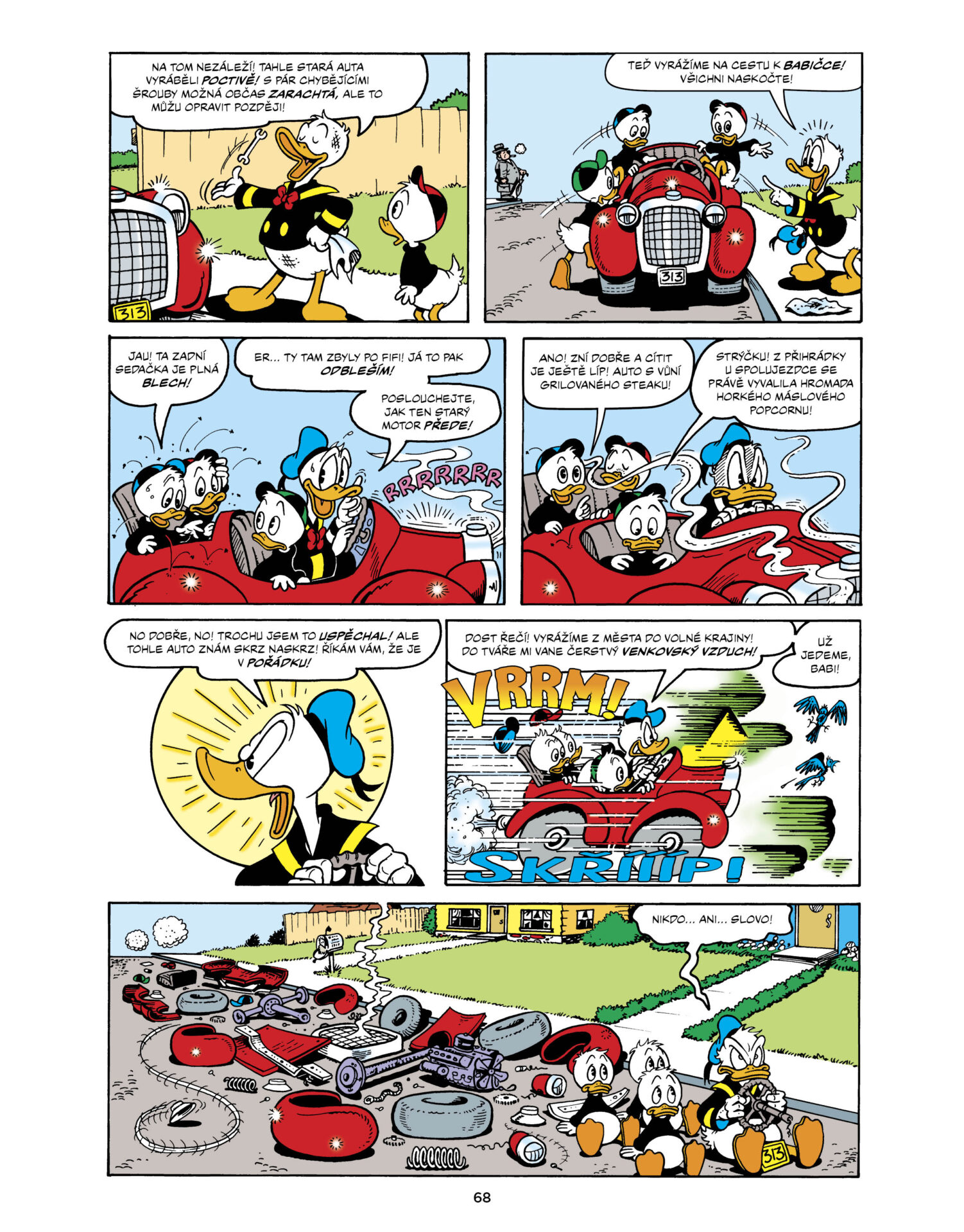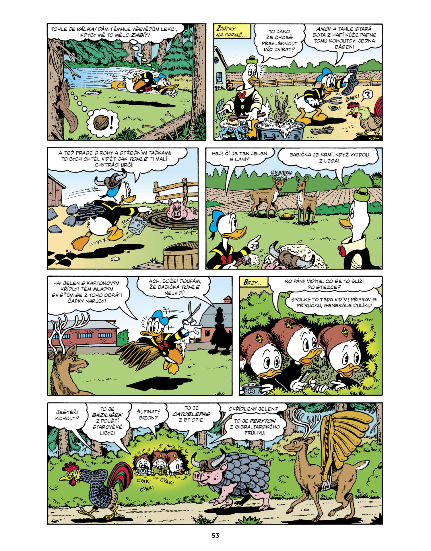 Samostatnou a zcela stěžejní kapitolou je pochopitelně vizuální zpracování. Don Rosa není jen obratný kreslíř, je to obsedantní detailista. Jeho panely jsou doslova přeplněné drobnými vizuálními vtipy, nenápadnými narážkami v pozadí a neskutečně pečlivou technickou kresbou. Zatímco u mnoha jiných tvůrců tvoří prostředí jen nutnou kulisu, u Rosy se vyplatí zkoumat každý čtvereční centimetr papíru. Úžasné je sledovat i to, jak se jeho kresba vyvíjí napříč jednotlivými kratšími povídkami, jichž je sbírka plná. Je patrné, jak se autor do svých ptačích postav postupně a s nesmírnou láskou vžívá a jak je umí prostě postavit do bizarní, ale funkční latě.