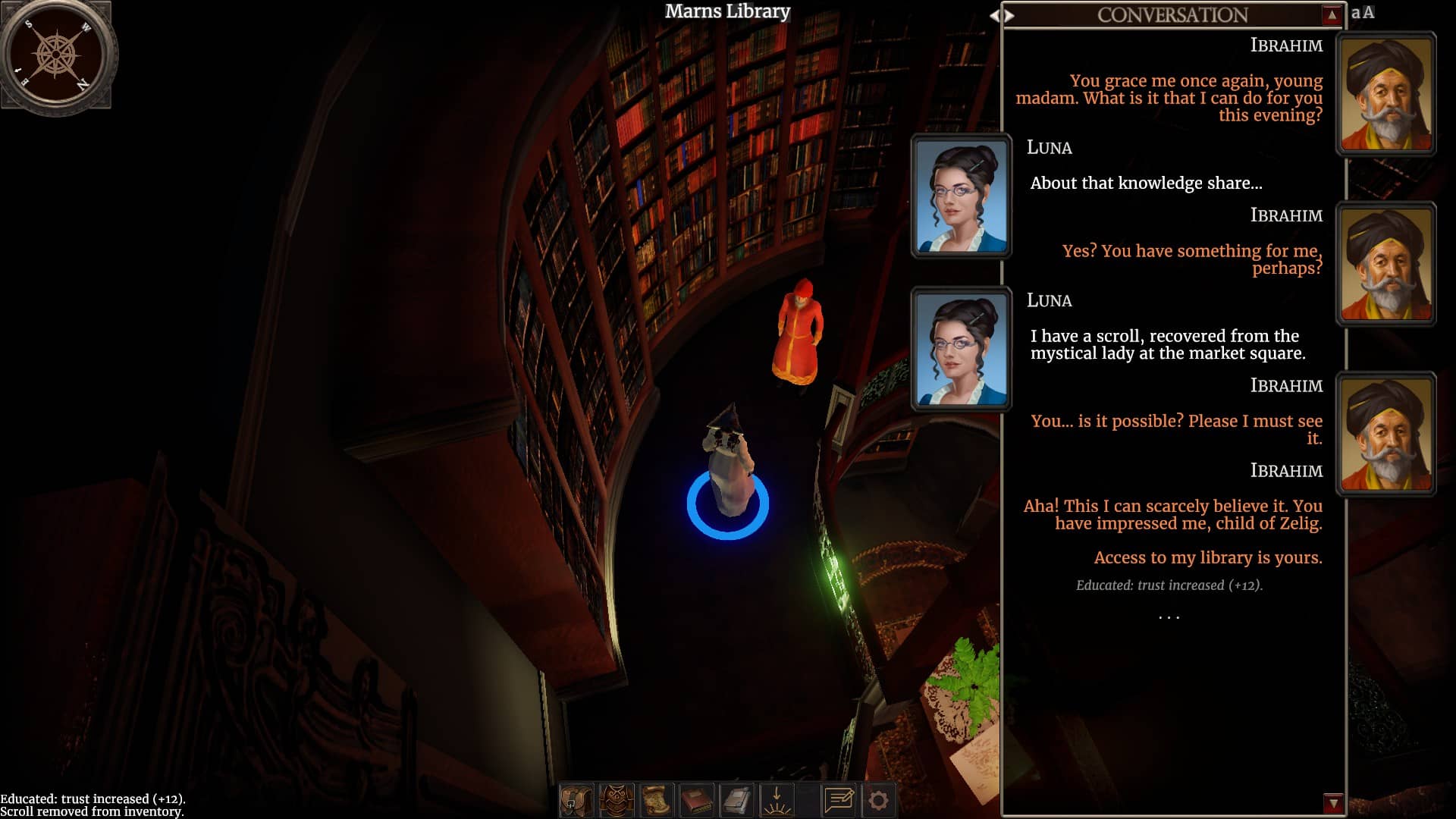 Jak už bylo zmíněno, příběh je hlavním pilířem The Necromancer's Tale a je naprosto vynikající. Studiu Psychic Software se podařilo vytvořit skutečně pohlcující vyprávění, které čítá přes čtyři sta tisíc slov ručně psaného textu, včetně detailního loru. Máte možnost konverzovat s více než sto osmdesáti NPC postavami, z nichž každá má svůj vlastní, ručně kreslený portrét (žádné generativní AI zde nenajdete, což je v dnešní době velmi příjemný bonus).