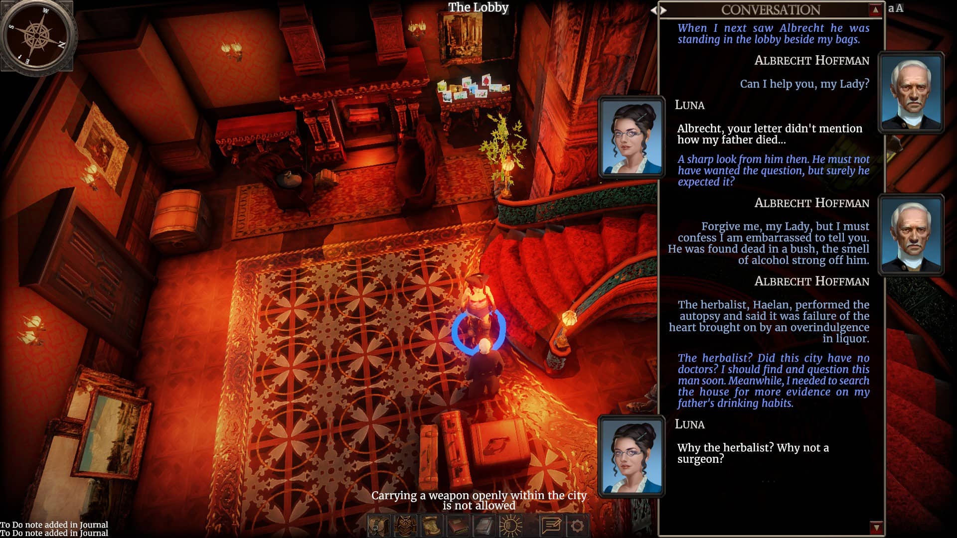 Titul klade velký důraz na sociální interakce. Budete vyšetřovat, vyjednávat, přesvědčovat a lichotit, abyste dosáhli svých cílů. Systém důvěry je zde klíčový – vaše volby, dokonce i v konverzaci, mají skutečný význam. Pokud důvěra města klesne příliš nízko, vaše možnosti jsou ovlivněny. Pokud klesne ještě níž, budete s vysokou pravděpodobností buď souzeni a oběšeni, nebo lynčováni zfanatizovaným davem. To dodává každému dialogu a rozhodnutí váhu a nutí hráče k opatrnosti nebo naopak k bezohlednosti, pokud se rozhodne pro totální sestup do zla.