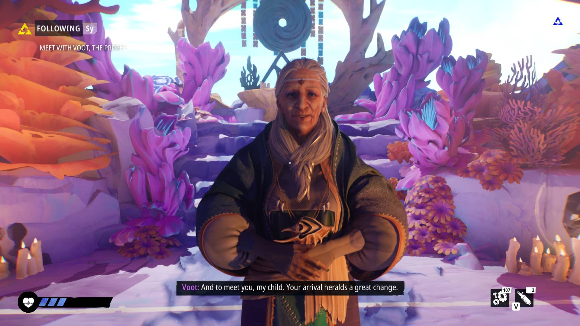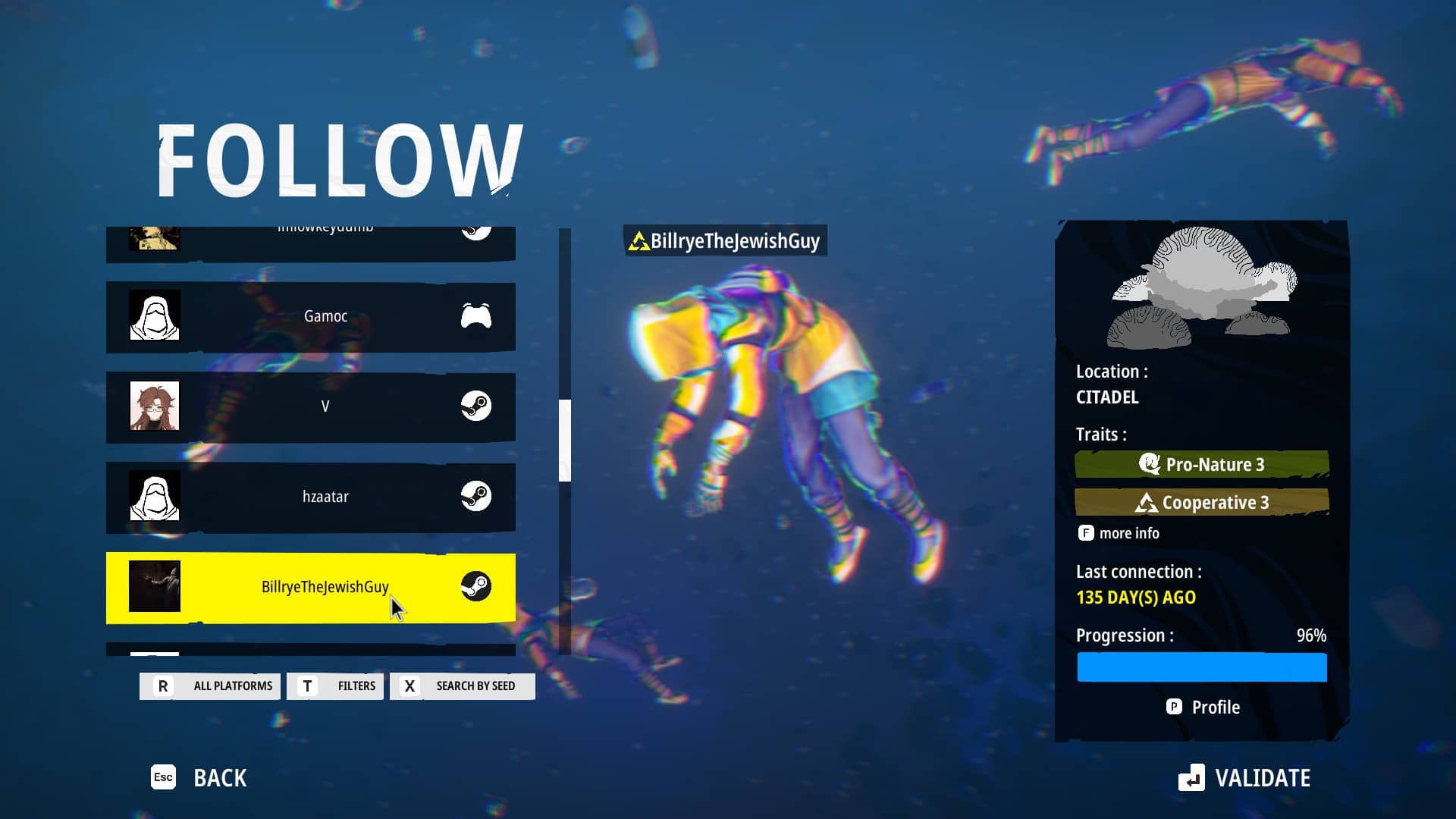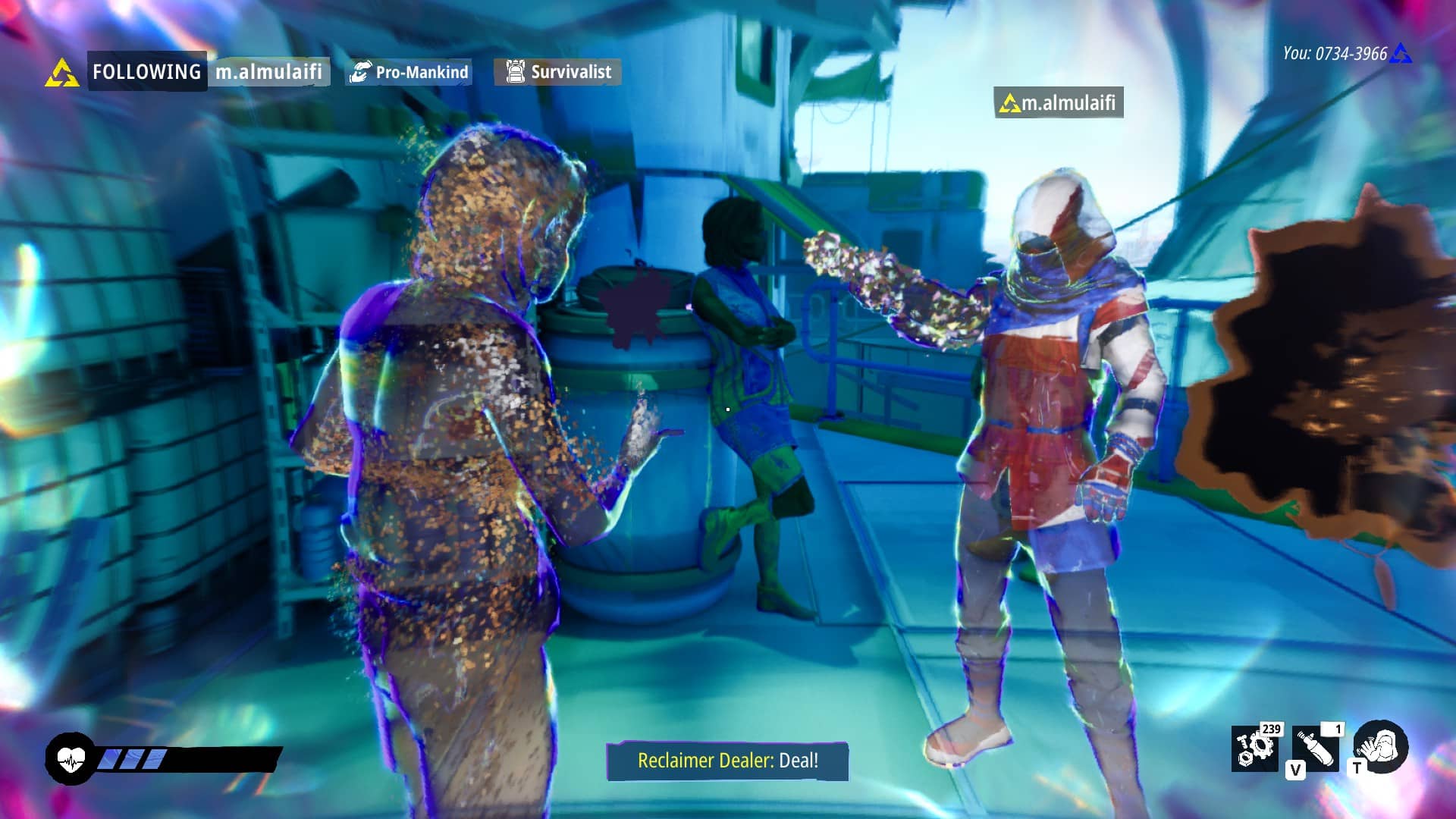 Hra vás přitom netrestá ani neodměňuje za jakýkoliv přístup. Místo toho sleduje vaše chování skrze pět ukazatelů, které se postupně naplňují podle individuálních voleb. Můžete být kooperativní, ochraňovat přírodu, zaměřit se na vlastní přežití, upřednostnit lidstvo, nebo se stanete tím, kdo si razí cestu bez ohledu na ostatní. Tyto hodnoty ovlivňují nejen to, v jakém světle vás další hráči uvidí, ale také některé dialogové možnosti a konce. Zároveň fungují jako ukazatel toho, zda se vyplatí někoho následovat. Přestože se hráči fyzicky nesetkají, mohou si zanechávat zprávy v podobě gest, které se zapíší jako vize připravené ke zhlédnutí, jakmile někdo další půjde kolem.