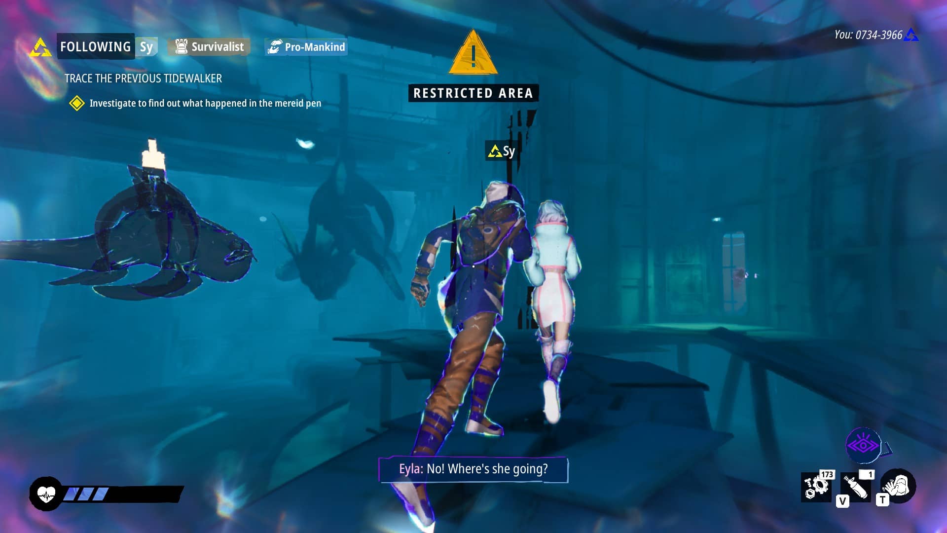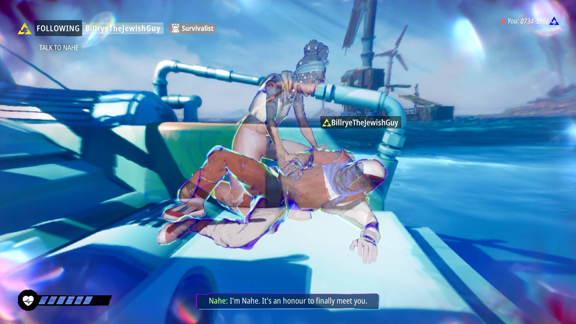 Svou nejzajímavější vrstvu však příběh získává díky neobvyklé narativní mechanice. Tides of Tomorrow totiž rozbíjí tradiční představu izolovaného singleplayeru a nechává do něj prosakovat stopy jiných hráčů pomocí mechaniky Online Story-Link. Je to jako neviditelné napojení na hráče, jehož cestu do jisté míry následujete v podobě vizí jeho vlastních rozhodnutí. Nejde o přímou spolupráci, ale o jakýsi ozvěnový systém, v němž kráčíte ve šlépějích někoho, kdo už tudy prošel před vámi.