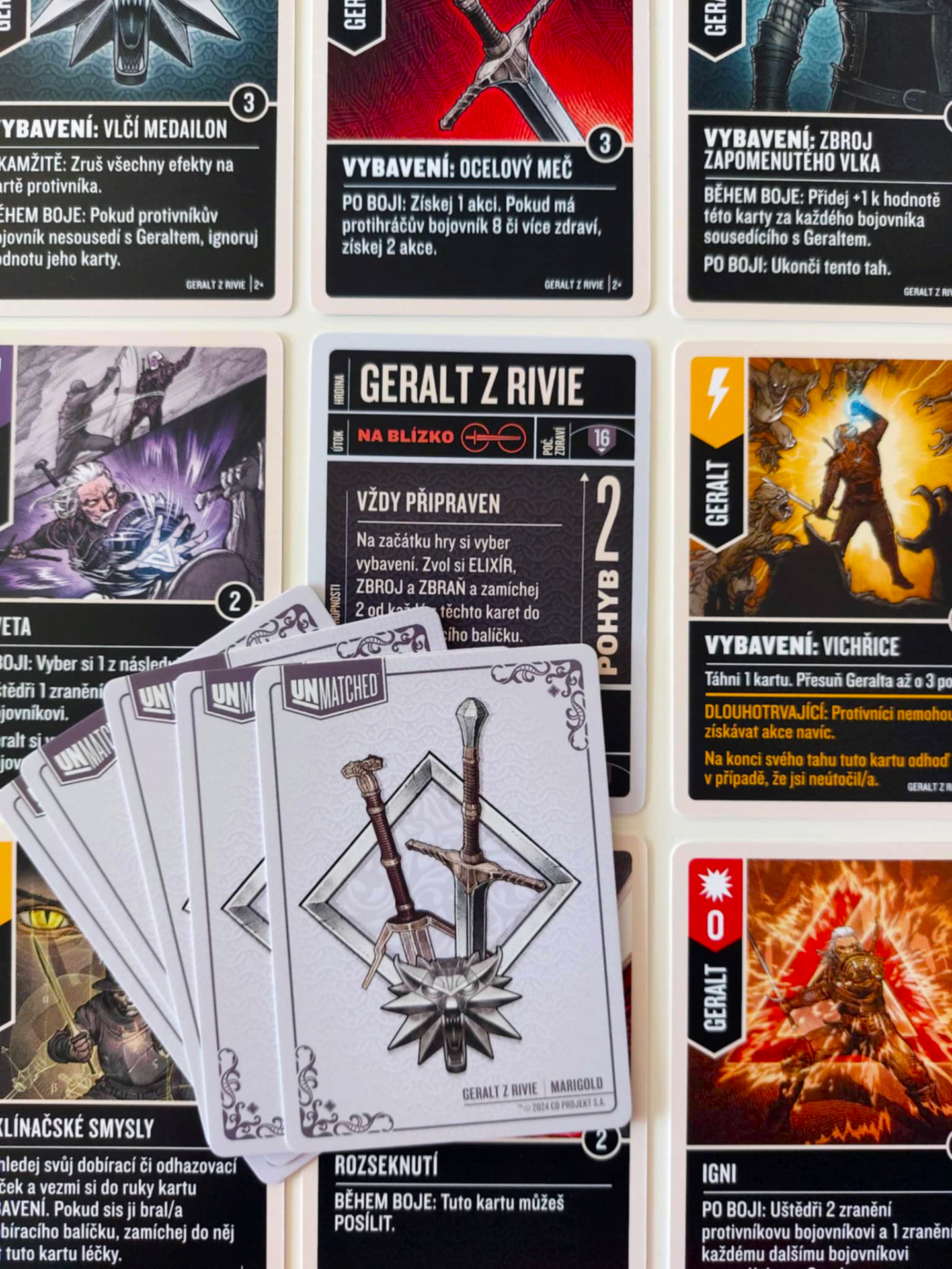 Věčná otázka, kdo by vyhrál v souboji, je základním stavebním kamenem fanouškovských debat po celém světě. Mohl by král Artuš porazit Sindibáda? Co by se stalo, kdyby se Medúza střetla Alenkou? Dokázala by Červená Karkulka porazit Beowulfa? Robin Hood Bigfoota? Sherlock Holmes Drákulu? Achilles Krvavou Mary? Naši Adélku z redakce kdokoliv porazit v CSku? Série deskových her Unmatched bere tuto fantazii a přetavuje ji v elegantní a nesmírně zábavný soubojový systém už roky. Nyní se do této arény legend vrhají i postavy z drsného, magií a monstry protkaného světa Zaklínače. Edice Unmatched Zaklínač – Stříbro a ocel není jen dalším rozšířením, je to dokonalé zhmotnění taktických soubojů, které známe z knih a her, převedené na herní desku s neuvěřitelnou věrností a citem pro detail.