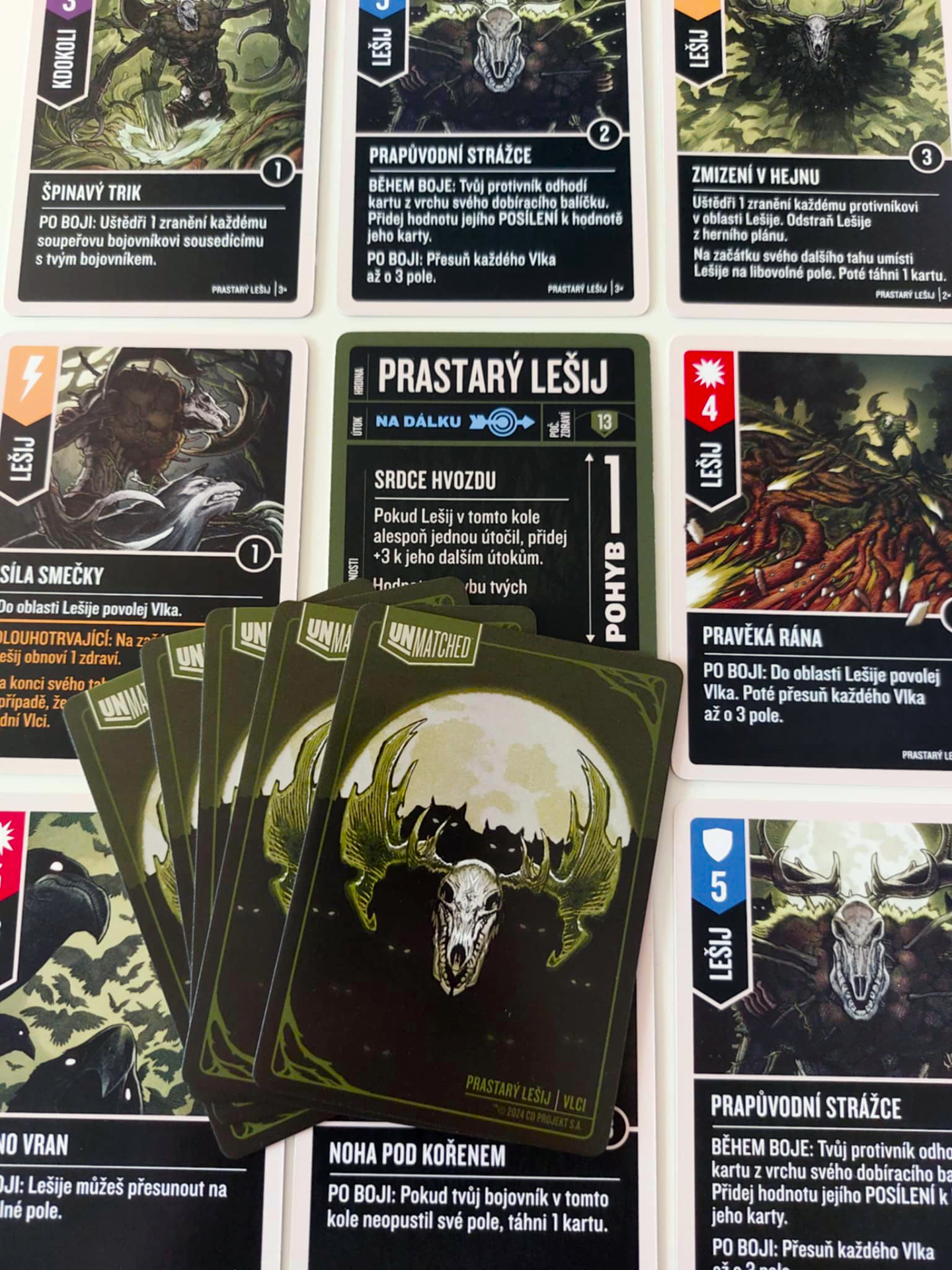 Nyní si určitě říkáte, tak tohle je 9/10, nebo dáš rovnou 10, protože jsi už tu Ciri versus Geralt odpustil, ne? Bohužel dámičáci a páničákové, těch nedostatků je tu více. Ačkoliv se to z recenze zdát nemusí, je to vcelku složitá desková hra a byť jsou pravidla velice dobře připravená a napsaná, trvalo mi neskutečně dlouho se do hry dostat. Nicméně to je stále takový malý detail. Tím, co mi vadilo nejvíc, je nevyužitý potenciál pomocníků. Jak jsem psal výše, jsou spíše podpora, u Lešije sice pomalu hlavní útočná síla, přesto s nimi můžete mít nějaké ty plány. Bohužel, pokud se soupeři podaří vás udolat dříve, pomocníci padnou s vámi, což bych možná pochopil u magického Lešije, ale Marigold si vesele žije dál a ten jednorožec by měl též. Alespoň ten jeden tah navíc, kde byste mohli dokončit svůj mistrovský plán. Ale víte co, já tomu odpouštím, protože pokud chápu správně, všechny díly Unmatched se dají vzájemně kombinovat, a to je masakr.