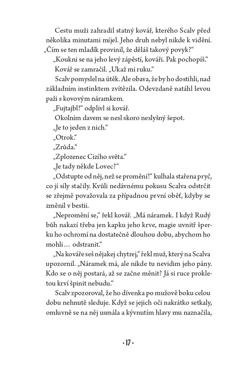 Stejně tak mě bavila postava Scalva. Mladý otrok to v životě neměl snadné, zažil vážně jen utrpení, a přesto jeho touha po lepším životě, ta naděje, vyhledávání štěstí, osobní rozhodnutí, to všechno vás k němu tak nějak poutá. Neskutečně dobře napsaný charakter. U Thaddea jsem měl ze začátku pochyby, nicméně postupně jsem si jej oblíbil. Přišel mi jako mentor trojice, stejně jako v případě dávno napsané Deltory, kdy Bardovi bylo také pomalu ke čtyřicítce, zatímco Jasmína a Leif byli nezletilci. Thaddeus funguje napůl jako rodič, čtvrtinově jako mentor a zbytkem jako šílený zabiják. Je to totiž Lovec.