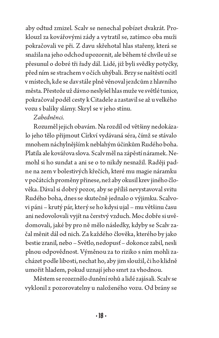Tak co se vlastně může pokazit? Inu, majitel Scalva se promění v monstrum a ten musí utéct, Nefftari se s cílem odhalit vraha nevěstek ocitne uprostřed místa mimo Citadelu, no a Thaddeus je samozřejmě propuštěn, když začne šílená invaze a on musí najít a přivést Nefftari za jejím bratrem. Tento začátek pak spustí takový řetězec událostí, že příštích 400 stran budete mít jen zatajený dech a doufat, co se stane dál.