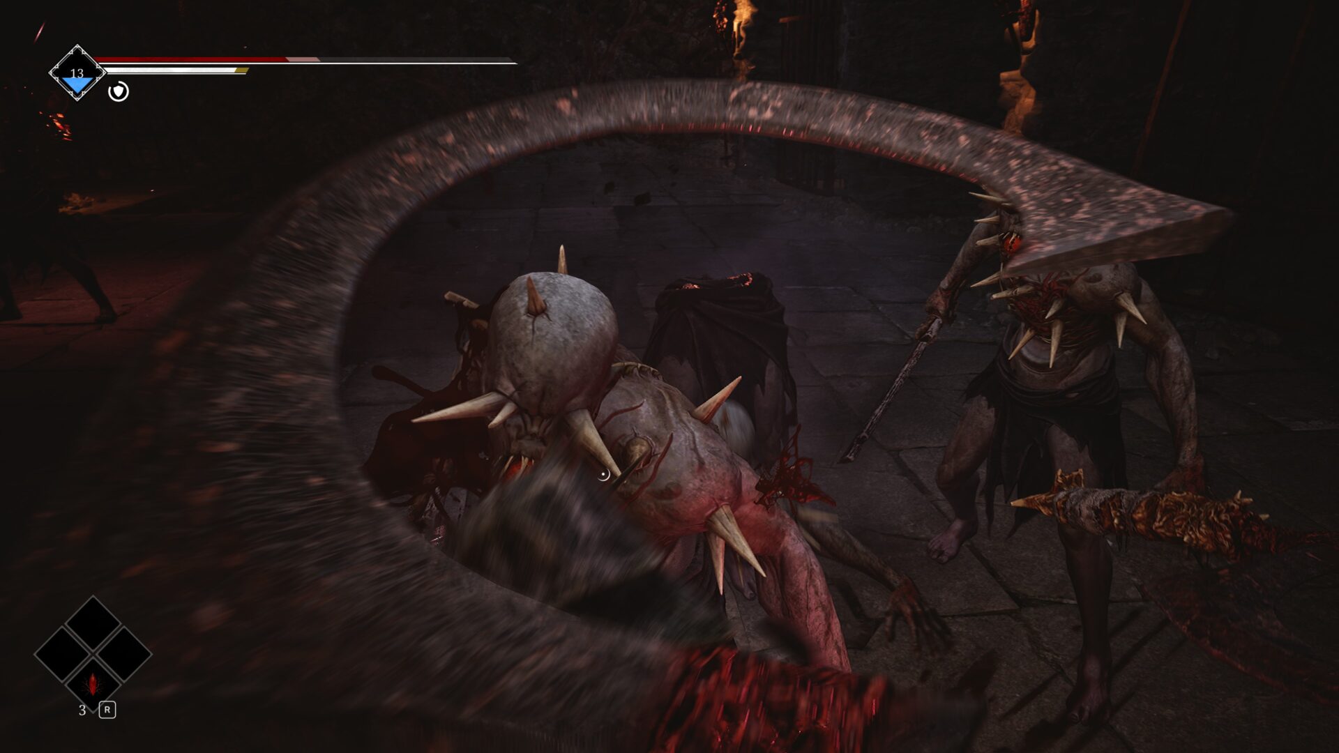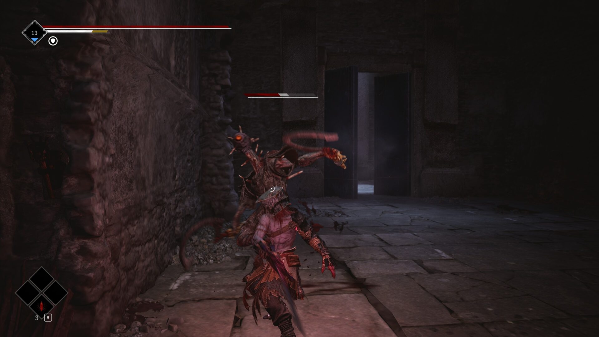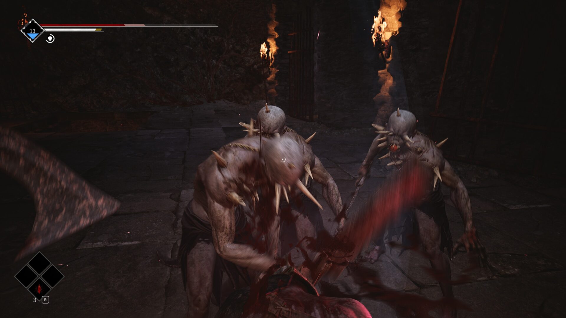 Je to tedy ještě vůbec soulslike hra a RPG? Ano, je, ale ne v klasickém smyslu. Jediná možnost, jak ovlivnit statistiky ve Vanran je skrze vybavení, tedy equip, který zahrnuje trup, nohy, prsteny, rukavice a boty. Meč a helmu máte pevnou. A zde je to trochu na hlubší debatu a zamyšlení. Nemáte žádnou možnost na přímé ovlivnění statistik, dostanete se do situace, kdy se máte utkat s bossem, všechny truhly a místnosti jste již prošli. Takže máte tedy equip, ale stejně vám schází potřebná síla, výdrž nebo životy. Takže se můžete dostat do situace klasického „farmení“ běžných nepřátel a lze jen doufat, že s dalším levelem vám ten bodík do vitality snad padne. Namítnete: však si to můžu vytáhnout předměty a equipem! Ano, ale paradox je v tom, že když už máte všechno posbíráno, tak nemáte žádnou další možnost, kde předměty nasbírat. Postup mapou nebo lokací, řekněme, je sice volný a jsou zde určité koridory, ale je zde vždy jedna hlavní cesta, kterou se budete muset vydat. Nakonec tak stejně budete muset daným bodem projít a prostě zkoušet jiné taktiky a možnosti, jak toho démonického zplozence porazit. Myslím, že to je právě to, o co vývojářům v hloubi duše jde. Neexperimentovat na prvním místě s výbavou, ale pochopit hru, její mechaniky a naučit se správně uhýbat, využít techniku grappling hook a co nejbolestivěji zasáhnout v ten správný okamžik.