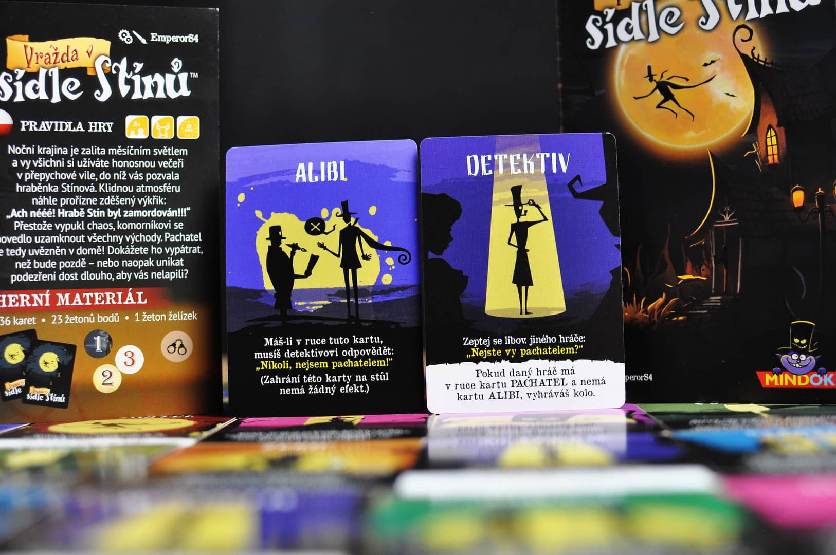 Noční krajinu zalévá studené měsíční světlo a za zdmi honosného sídla se schází vybraná společnost. Vražda v Sídle Stínů od vydavatelství MindOK hráče okamžitě vtahuje do atmosféry detektivní záhady plné podezření, falešných stop a nervózního smíchu. Smrt hraběte Stína rozbije zdánlivý klid večera a z každého z přítomných se rázem může stát detektiv, komplic nebo samotný pachatel. Hra si bere na mušku oblíbený motiv sociální dedukce, ale obléká jej do svižného karetního kabátu, který slibuje rychlé partie, intenzivní interakci a hodně mluvení u stolu.