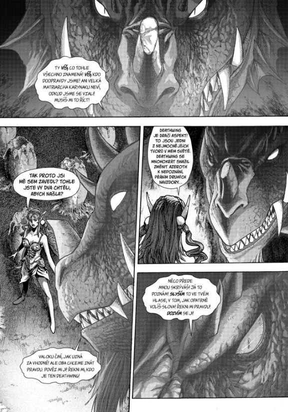 Všechna tato děsivá tajemství a prastará magie se ve finále sbíhají u jediné, všeobecně známé a obávané entity – Deathwinga (ach, Neltharione, PROČ!). Tento zcela zkažený Dračí Aspekt, který je v herním světě plně zodpovědný za apokalyptické a zničující události slavného datadisku Cataclysm, hraje v tomto komiksovém závěru světa World of Warcraft naprosto klíčovou a destruktivní roli. Dostaneme vítaný návrat ke klasické a vysoce dynamické kresbě, která k akčním příběhům Richarda A. Knaaka neodmyslitelně patří. Konečně, víc snad ani říct nejde.