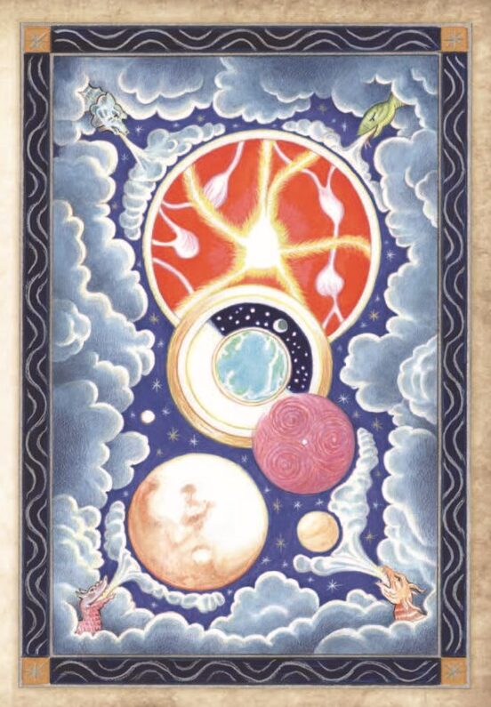 A myslíte si, že je to vrchol? Ani náhodou. Kdyby šlo jen o mapy a informace, byl bych spokojený, ale vizuální stránka této knihy mě naprosto odrovnala. Je to dokonalé. Už jen úvodní kresby kapitol, stylizované jako nádherné středověké slovanské fresky, mě okamžitě vtáhly do správné, syrové atmosféry. To pravé vizuální obžerství ale přichází s celostránkovými ilustracemi, což je prakticky ryzí malované umění, nad kterým jsem trávil dlouhé minuty. Způsob, jakým je zachyceno Dol Blathanna, Údolí květů, je dechberoucí, ta záplava barev, světla a prostě přírody je přesně taková, jakou jsem si vysnil při čtení povídek. A pak ten brutální kontrast! Když jsem se zase vrátil na temný, ohněm ozářený a hrozivý Chrám věčného ohně, cítil jsem ten sálající fanatismus a strach přímo ze stránky. Upřímně je to top strop nádhera.
