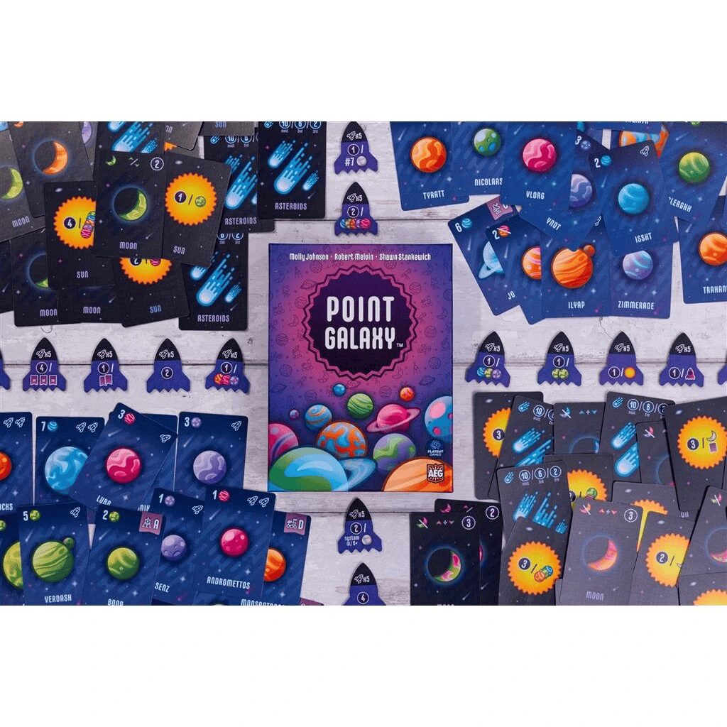 Mechanicky vychází Point Galaxy z dobře známého principu sbírání karet a chytrého kombinování bodovacích podmínek. Zatímco v karetní hře Zbodni salát jste volili mezi zeleninou a bodovacími kartami, ve hře Zboduj město jste pracovali s oboustrannými kartami, na jedné straně jsou zdroje, za které si můžete pořídit budovy přinášející trvalé bonusy nebo vítězné body. Tentokrát se ale přesuneme mnohem dál. Budete vytvářet vlastní hvězdné systémy. Každá karta představuje kosmické těleso, planetu, měsíc, slunce, asteroid nebo červí díru a vaším úkolem je je seřadit a propojit tak, aby přinesly co nejvíc bodů.