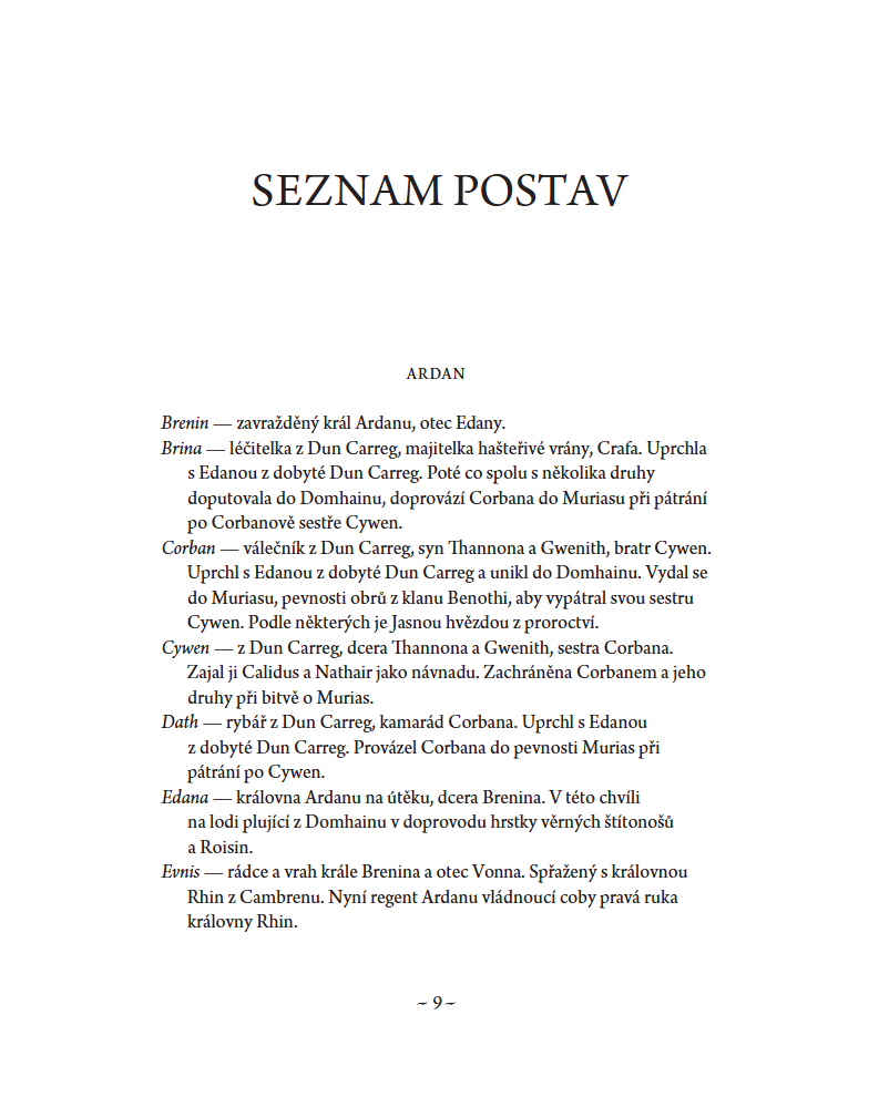 Obrovským pozitivem díla je práce s ženskými postavami. Autor boří mýty o tom, že v drsné fantasy hrají ženy druhé housle (omlouvám se fanouškům Zaklínače). Září především královna Edana, která prochází fascinujícím vývojem v bažinách Ardanu. Z vyhnané šlechtičny se stává nekompromisní vůdkyně partyzánského odboje, která se nebojí ušpinit si ruce, nohy a mnoho dalšího. Navíc její vztah s Camlinem, který se z bývalého zbojníka transformoval v jejího nejvěrnějšího ochránce a otcovskou figuru, je dojemný a dodává příběhu hloubku.