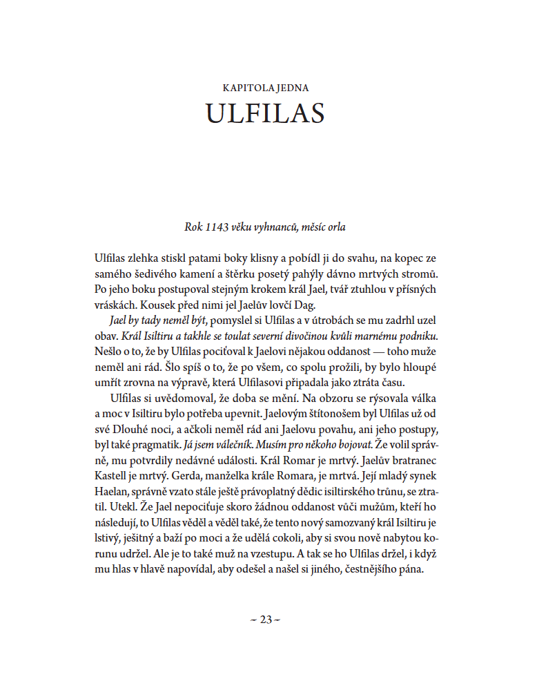 Víte, stále zde platí ale můj osobní problém s Ich formou a Zkáza mi vůbec nepomohla. Sledujeme neuvěřitelných čtrnáct úhlů pohledu, a musím říct, že snad poprvé jsem nebyl zoufalý. Gwynne s těmi perspektivami prostě pracovat umí. Jedním z nejlepších narativních triků v knize je popis bitev skrze překrývající se kapitoly. Sledujeme jednu událost očima bojovníka v první linii, hned v další kapitole vidíme tu samou řežbu z pohledu velitele na kopci a následně očima nepřítele. Je to neuvěřitelně funkční a dynamické. Přesto ne můj šálek kávy, budu upřímný.